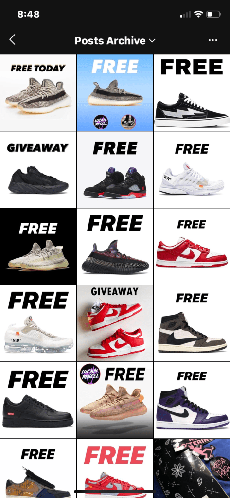 Over the time I have been reselling on Instagram, I noticed that giveaways were a trendy subject. I mean who would not want a free pair of shoes or tee shirt. So, on March 14th, 2020 I created my giveaway page for Instagram.